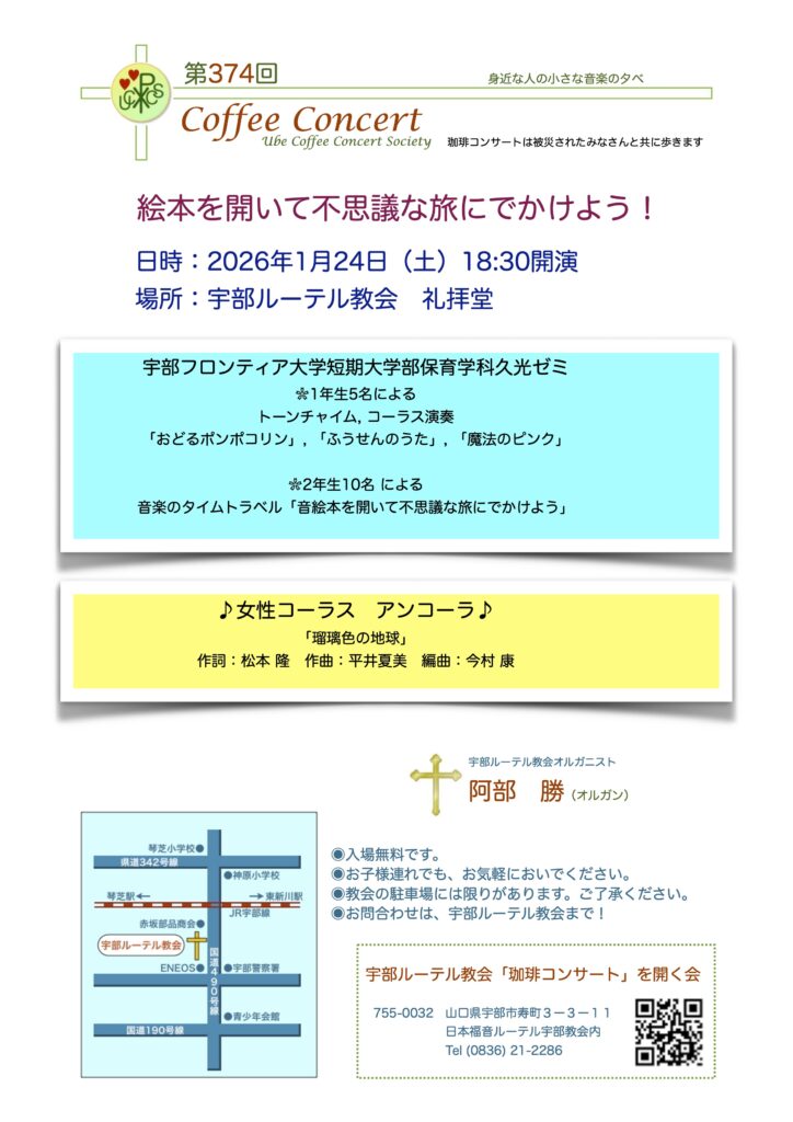 1月の珈琲コンサートは毎年恒例の宇部フロンティア大学久光ゼミの学生の皆さんによる演奏と、